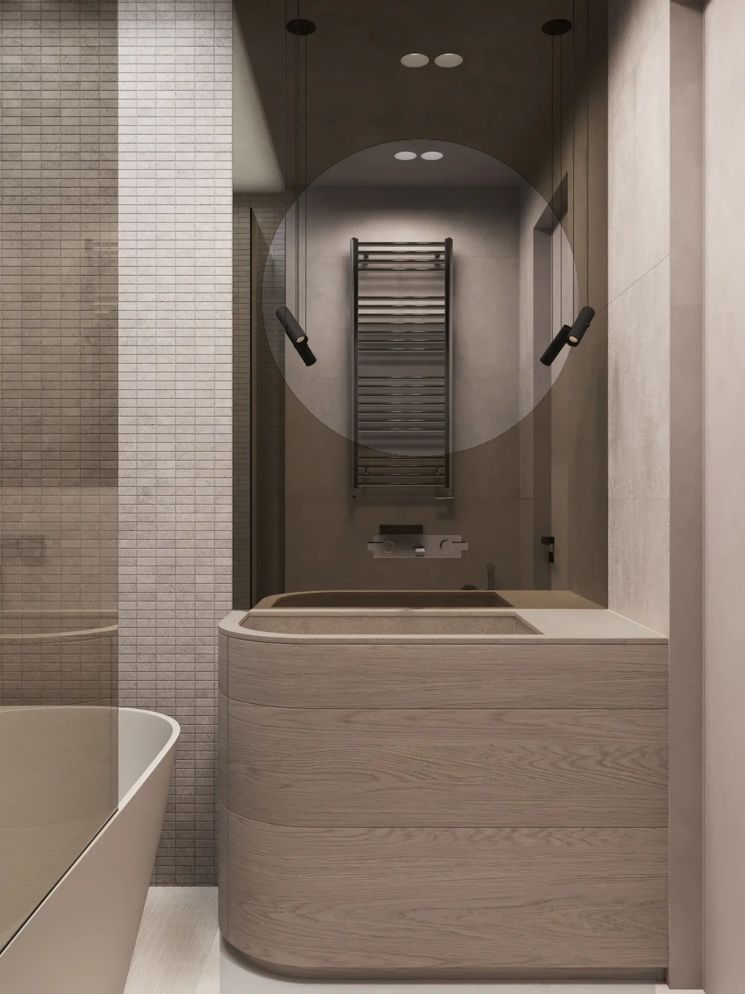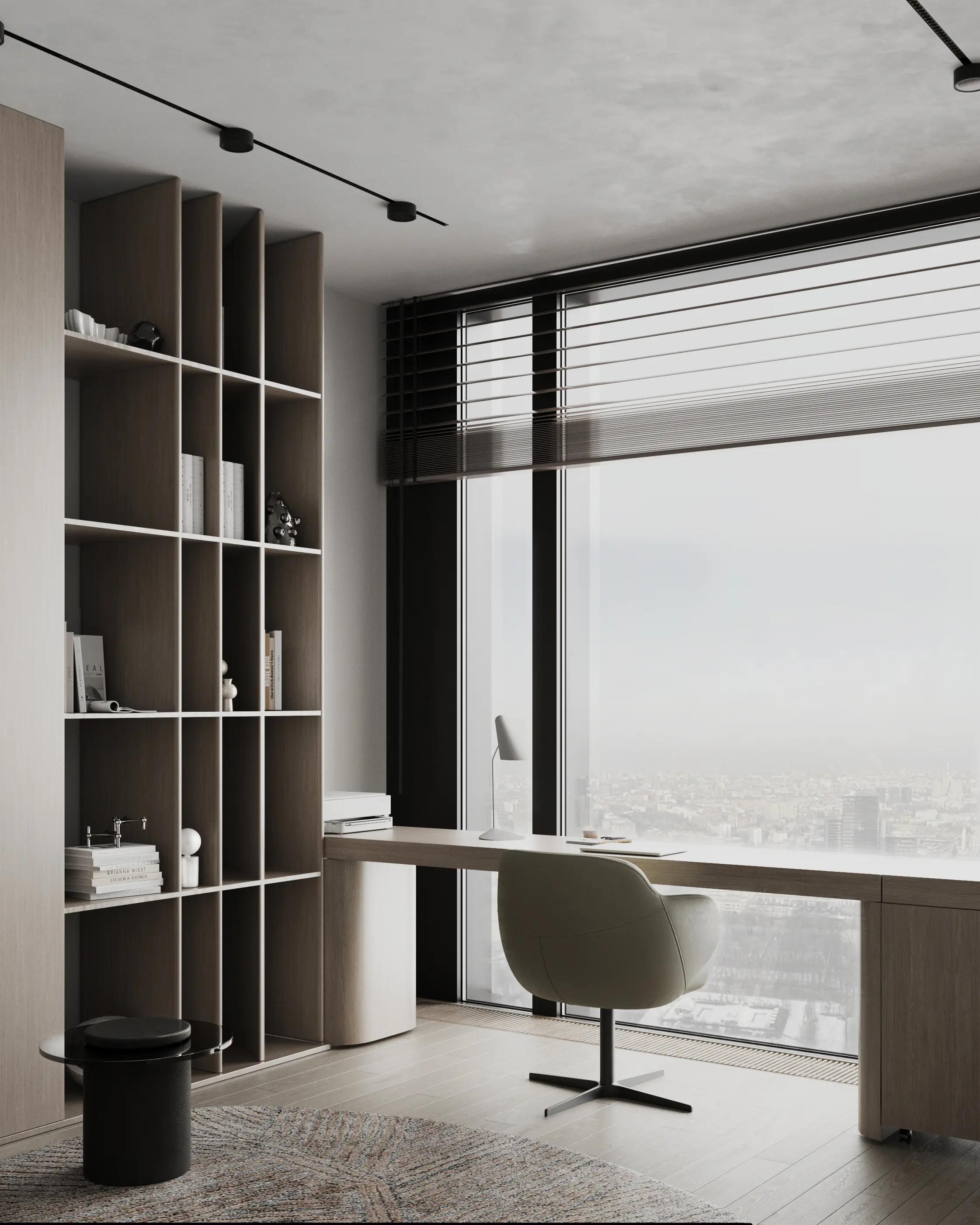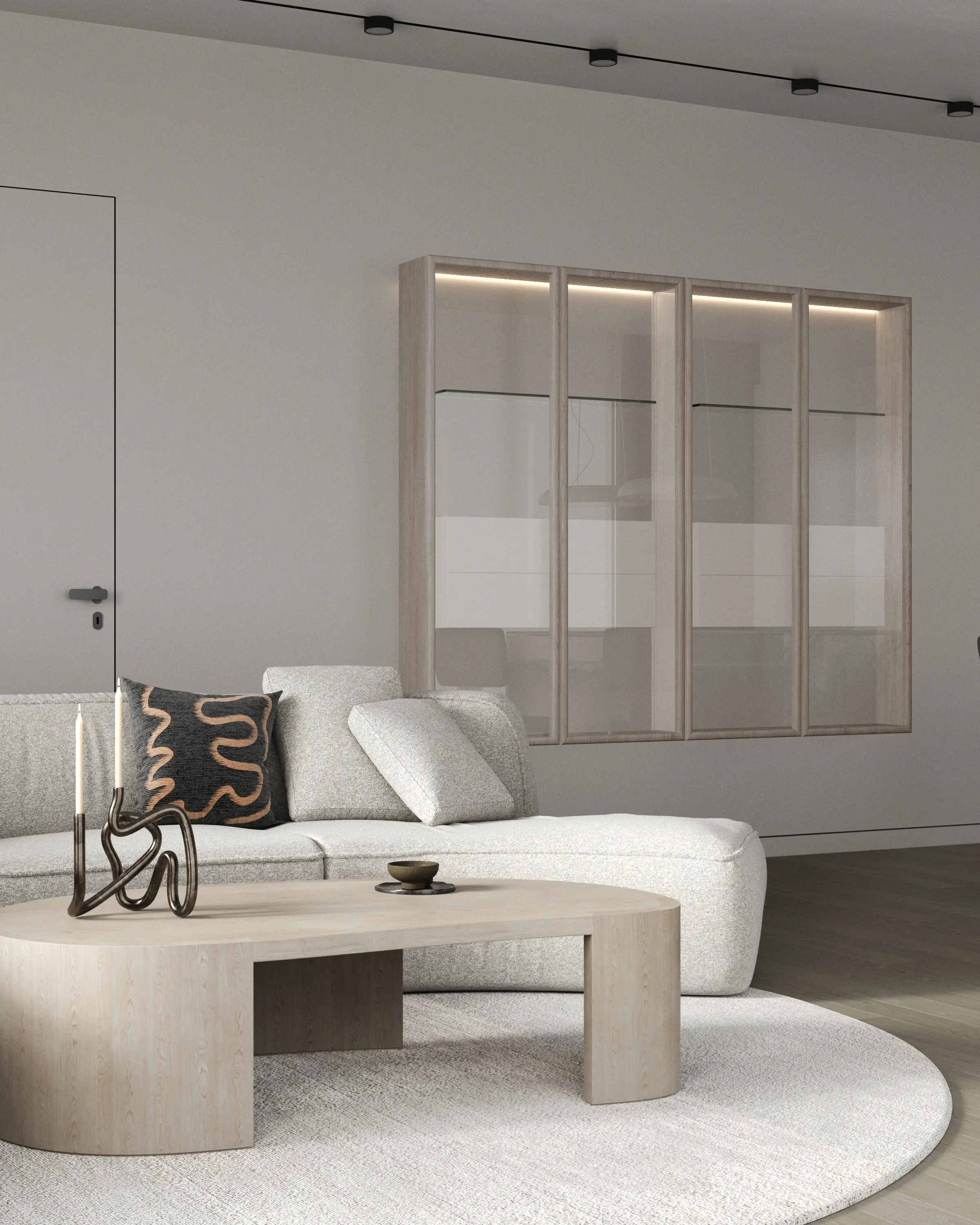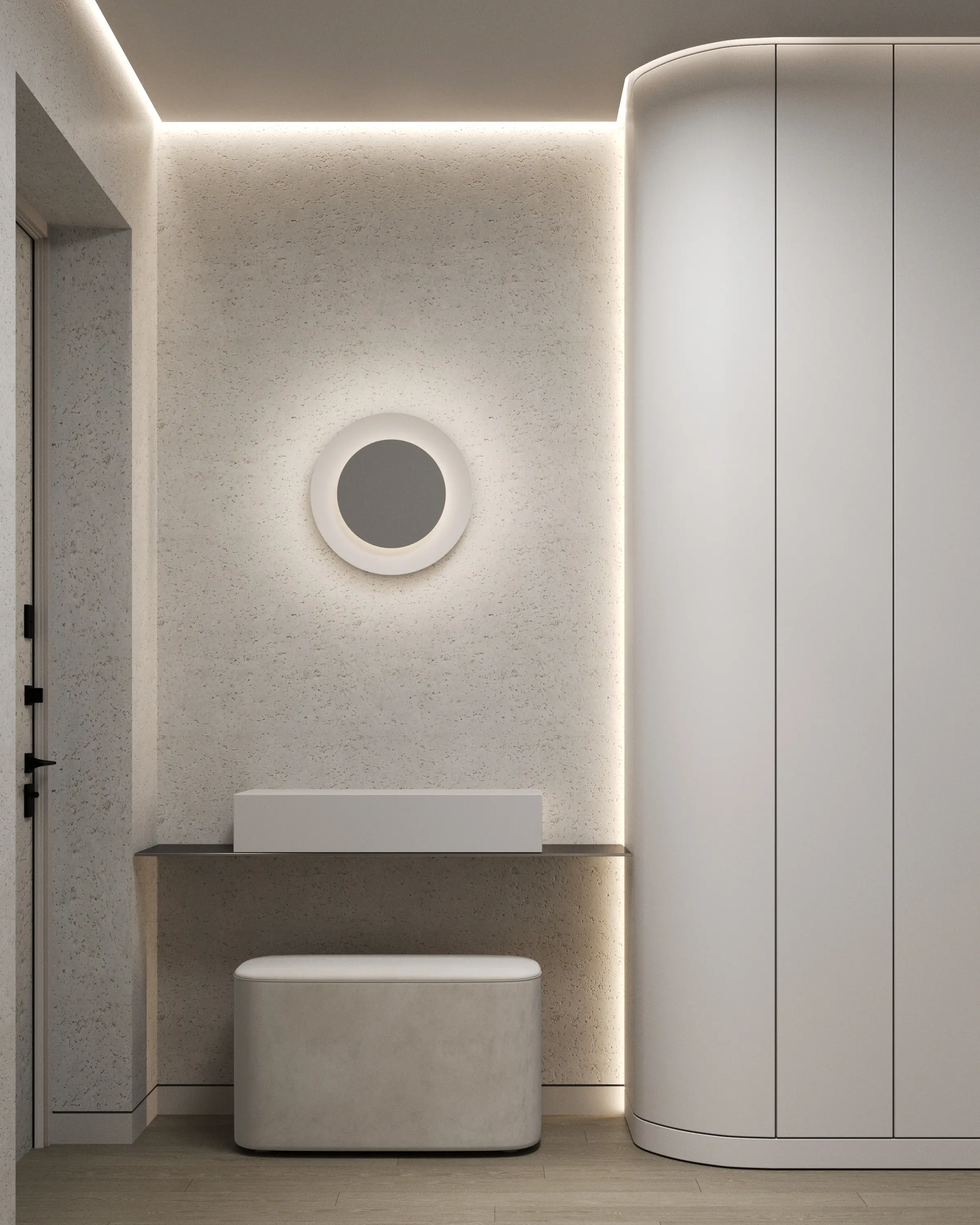 Дизайн-проект в ЖК Capital Towers для ценителя минимализма и строгости! Квартира площадью 104 м² оформлена в духе аскетизма. Мы создали пространство с минимальным количеством мебели, акцентируя внимание на полукруглых линиях и текстурах шпона мрамора.