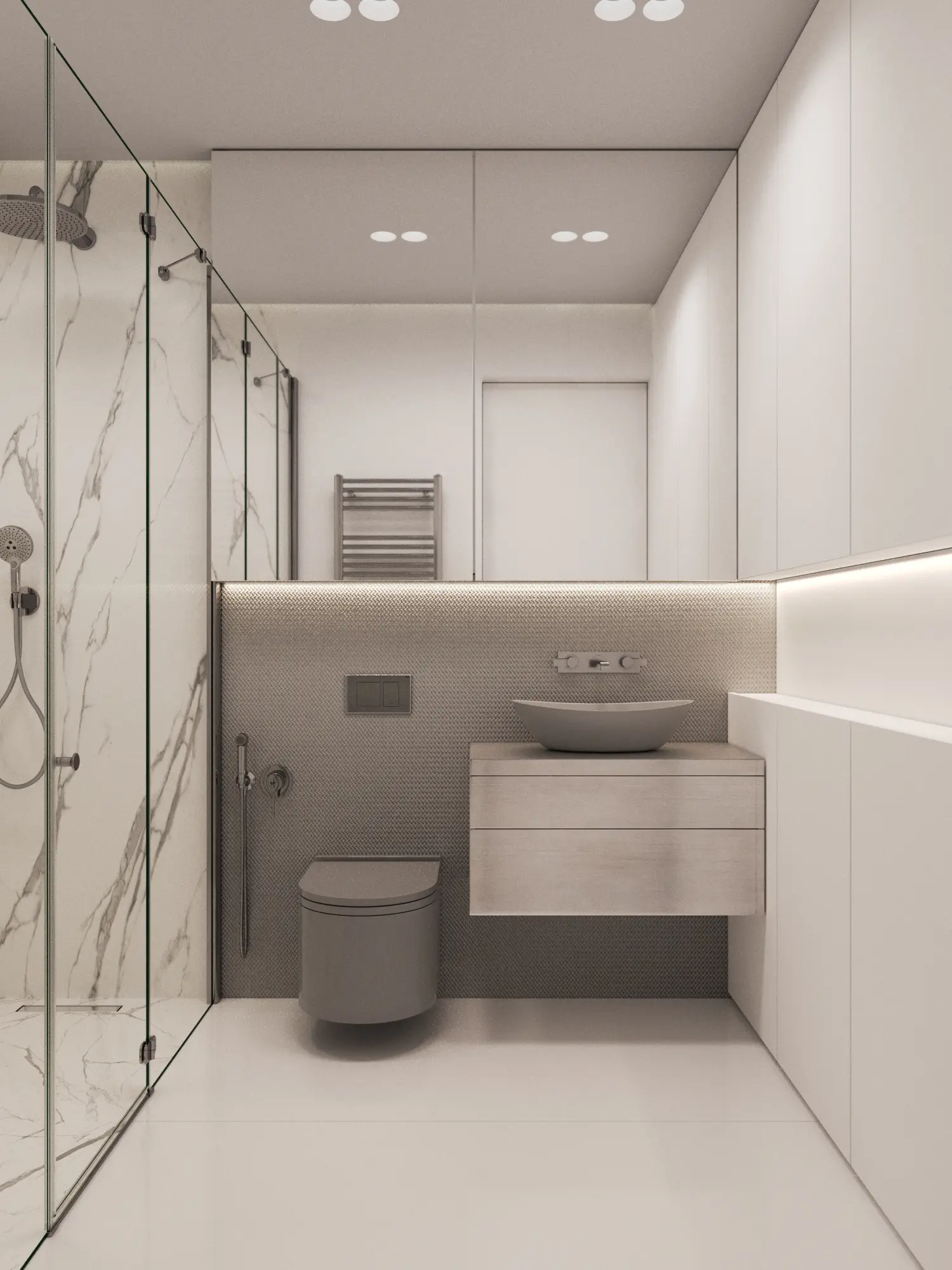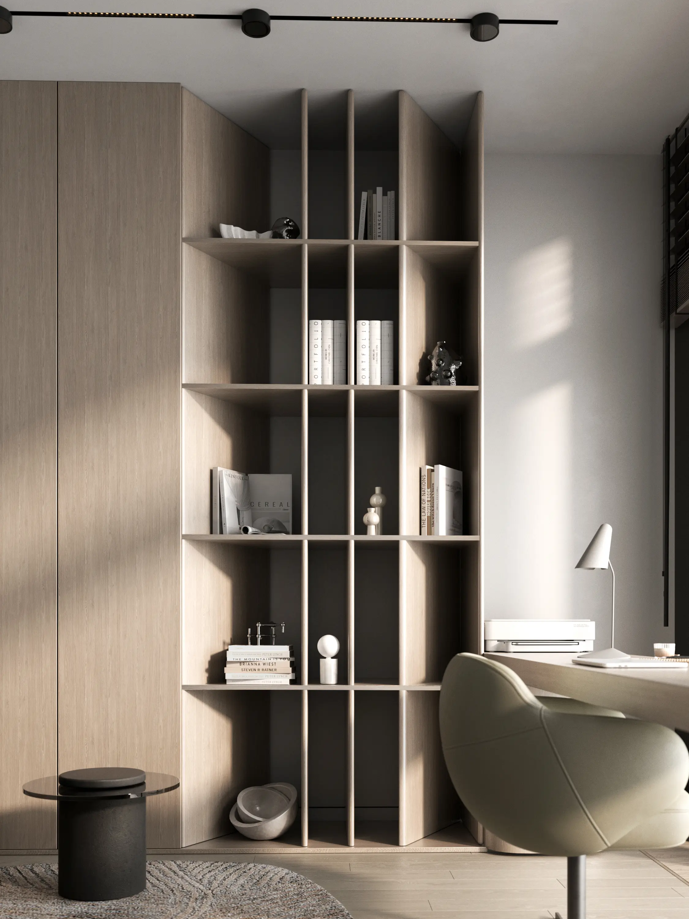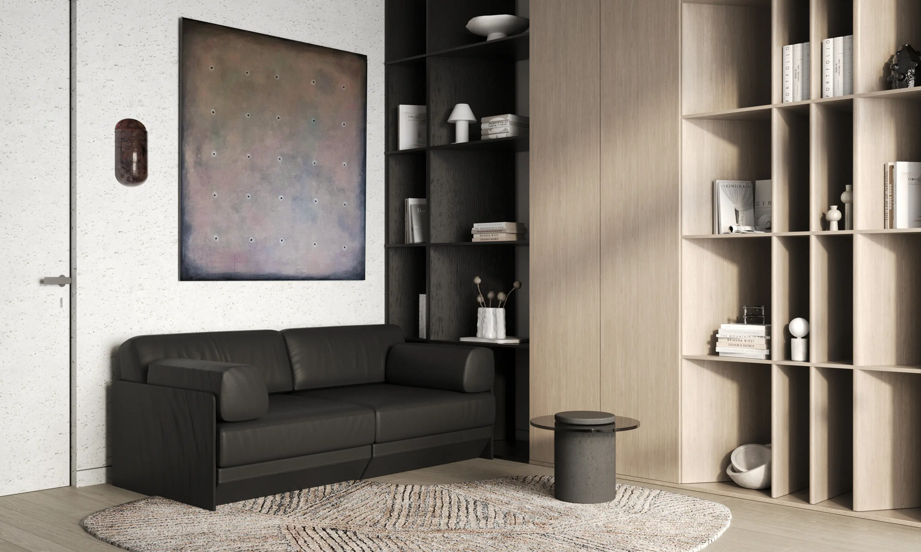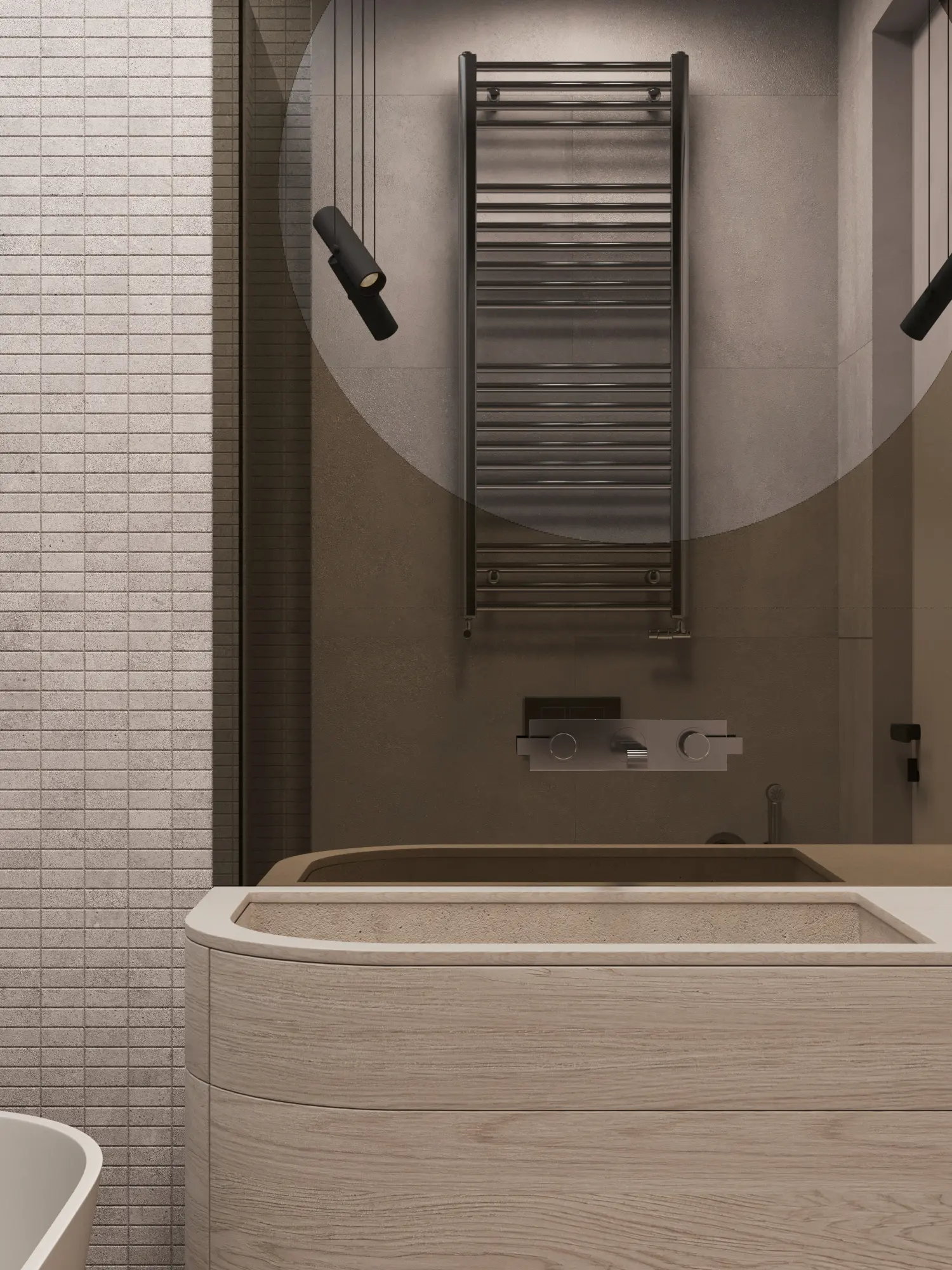 Дизайн-проект в ЖК Capital Towers для ценителя минимализма и строгости! Квартира площадью 104 м² оформлена в духе аскетизма. Мы создали пространство с минимальным количеством мебели, акцентируя внимание на полукруглых линиях и текстурах шпона мрамора.
