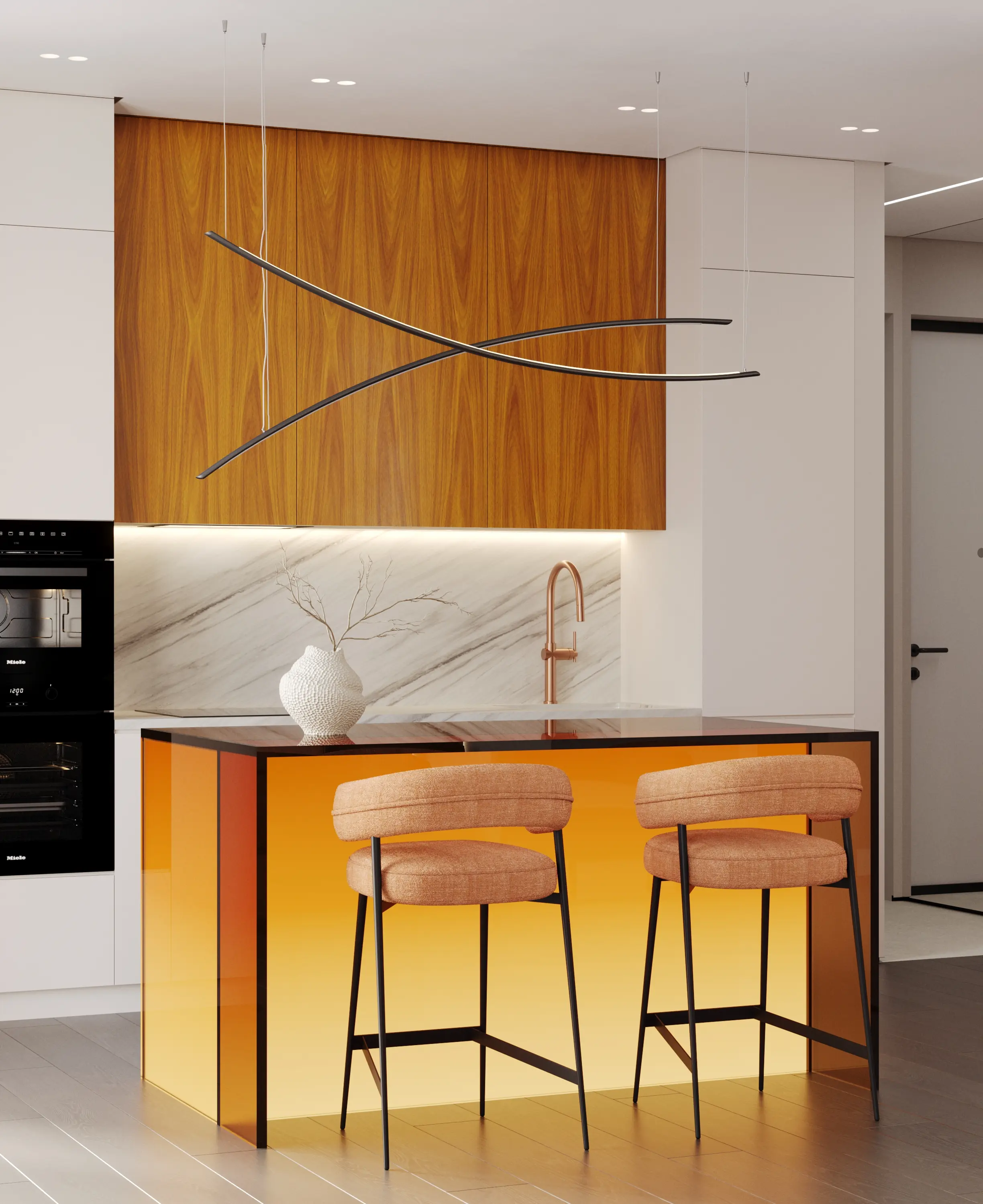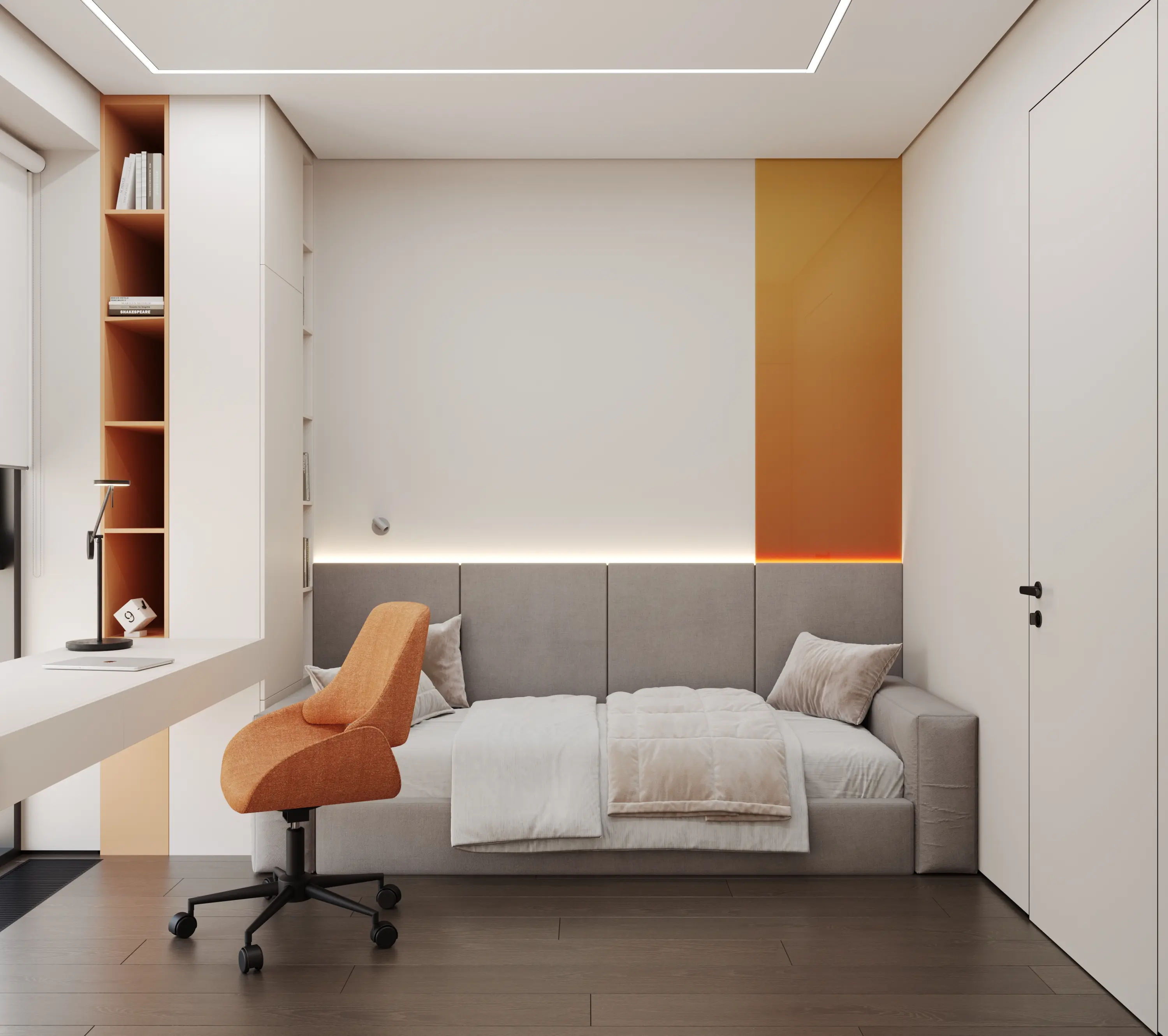 Квартира площадью 78,5 кв. м расположена в современном жилом комплексе Level Причальный в Москве. Пространство предназначено для комфортного проживания семьи из трёх человек.Основная задача проекта — создать светлый, лаконичный и минималистичный интерьер с выразительными цветовыми акцентами. Стилистика строится на сочетании элементов минимализма и современного дизайна.