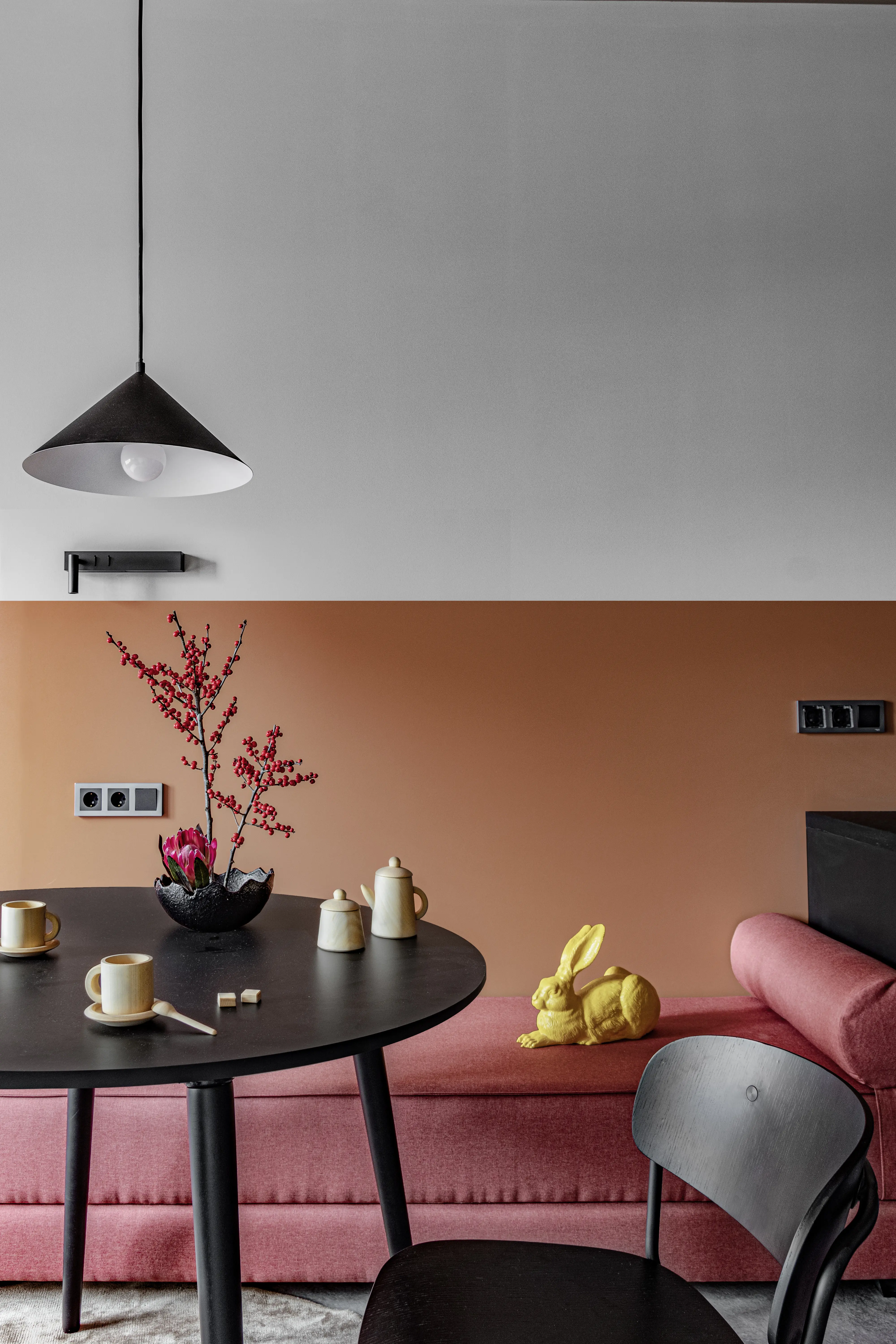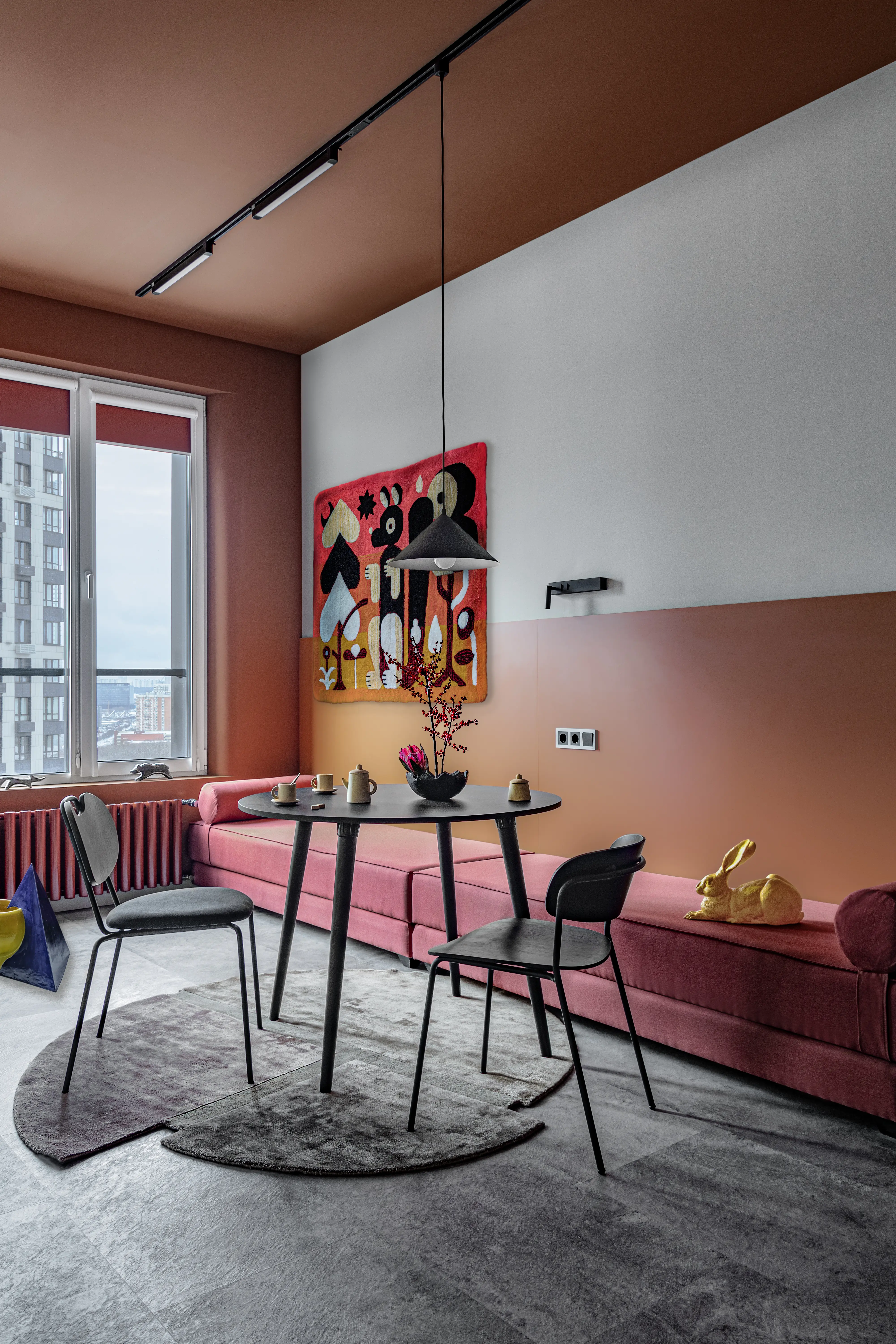 Клиент дал полный карт-бланш на смелые решения. Так как он собирался сдавать объект в аренду, оформление требовалось минималистичное и подходящее для долгосрочного проживания. Образ потенциального арендатора сложился сразу: современный динамичный квартал идеально подойдет студенту или молодой паре. Артистичный дизайн-проект с яркой палитрой полностью соответствовал желаниям готового к экспериментам клиента, поэтому был согласован с первого раза.