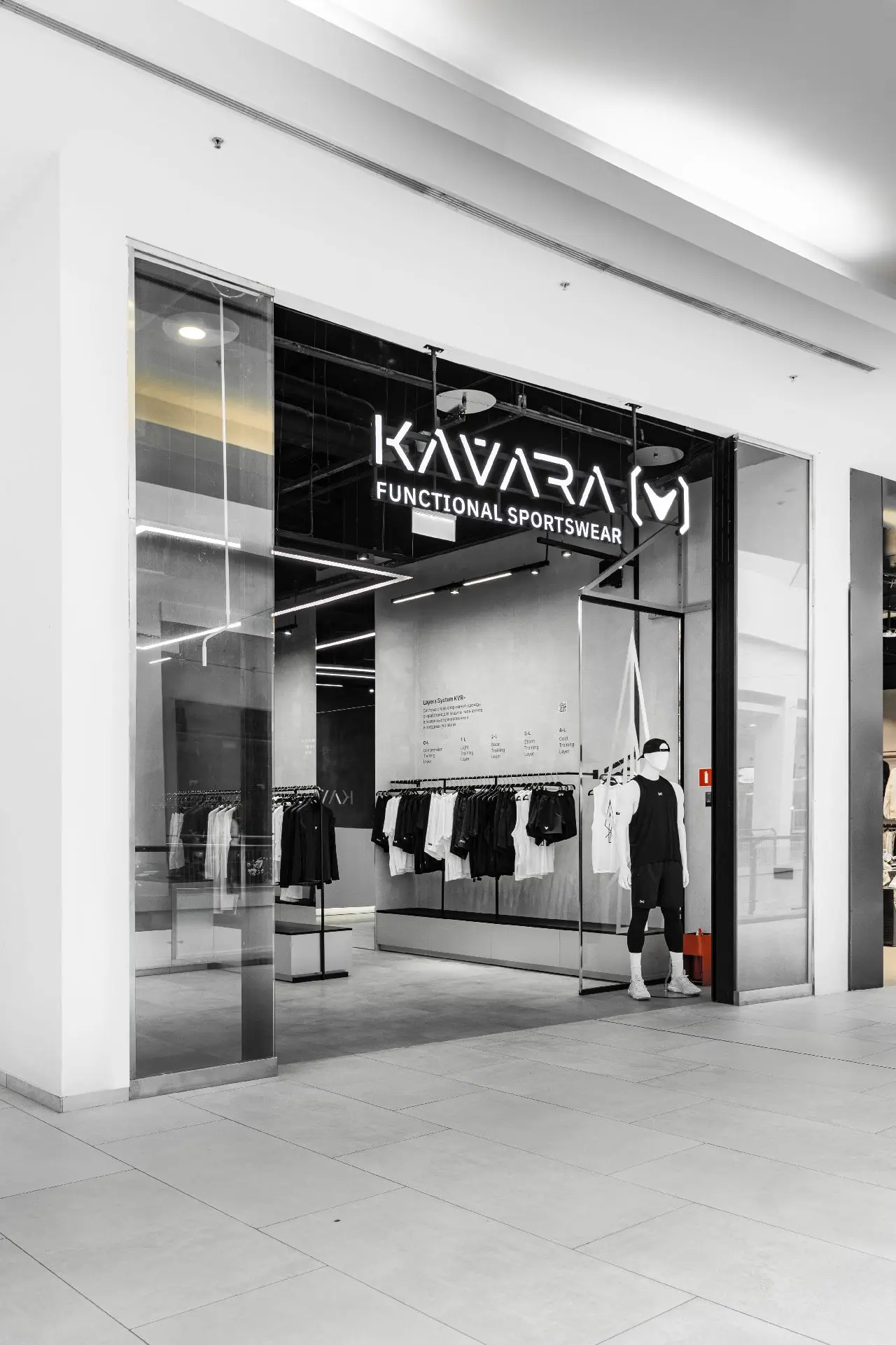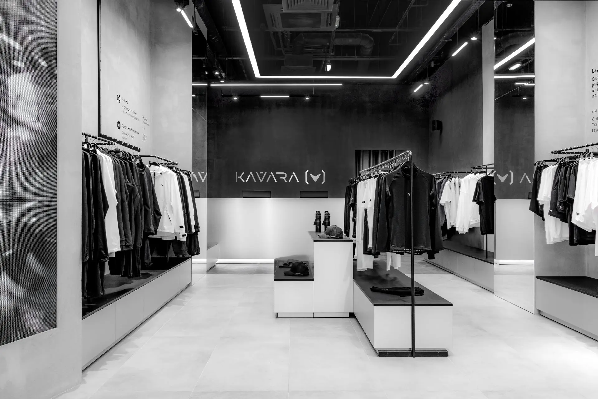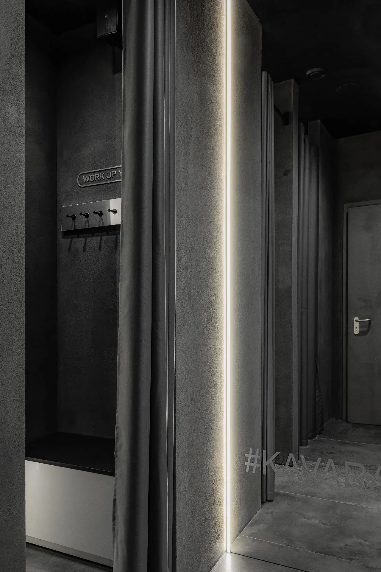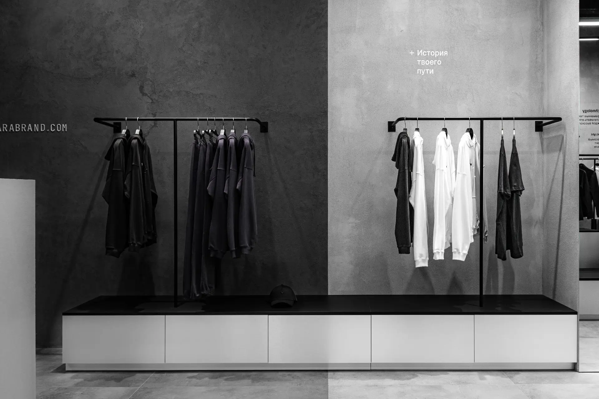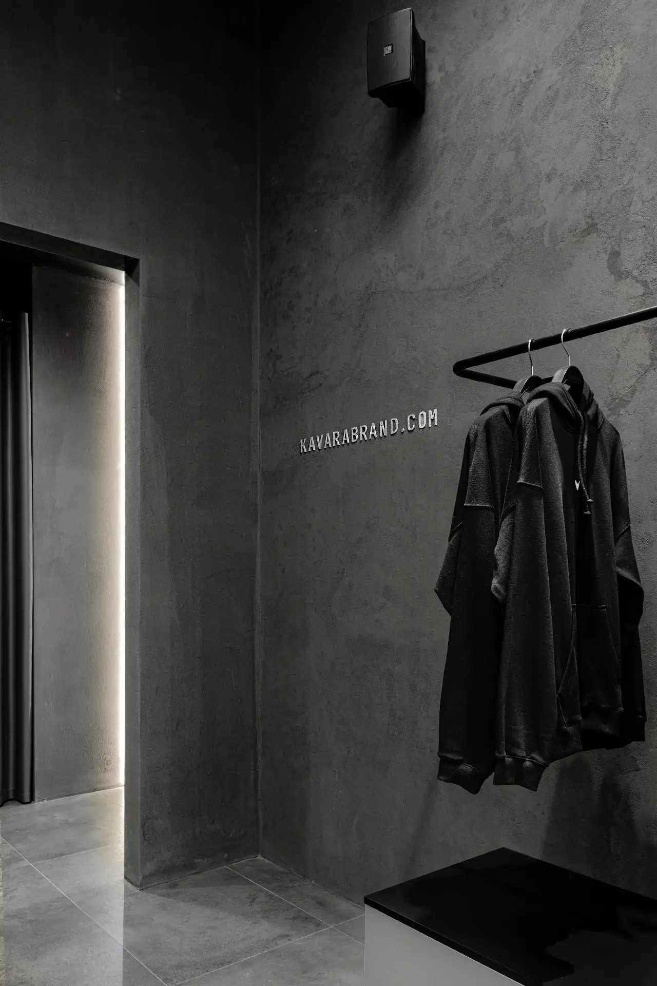 Молодые основатели бренда спортивной одежды KAVARA обратились к команде студии «Точка дизайна» с запросом на создание эффектного шоурума. Это был их первый магазин, поэтому к разработке интерьера все стороны подошли с большим энтузиазмом. В основу визуальной концепции легли подобранные заказчиками референсы, а еще брендбук и философия компании. В диалоге с клиентами зародилась идея о брутальной и обволакивающей атмосфере торгового зала. Полный отказ от ярких красок помог подчеркнуть индивидуальность продукта – пространство может показаться нарочито холодным, но синтез черно-серого монохрома и материалов подчеркивает строгость мужского характера. Современный стиль и смелая цветовая палитра без единого теплого оттенка отразили красоту самосозерцания и самосовершенствования, заложенную в «сердце» ДНК бренда.