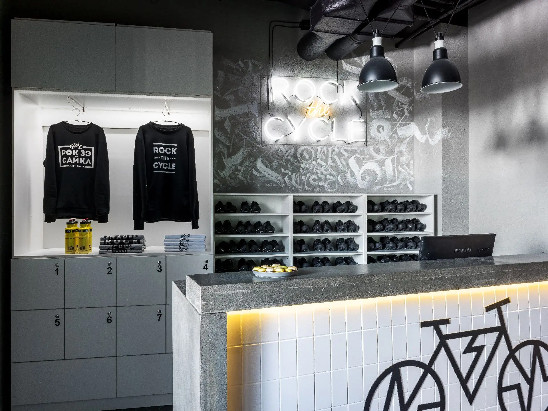 «Студия Rock the Cycle выражает благодарность дизайн-студии Точка дизайна за создание дизайн-проекта для сети многозальных студий сайклинга в Москве и Санкт-Петербурге»