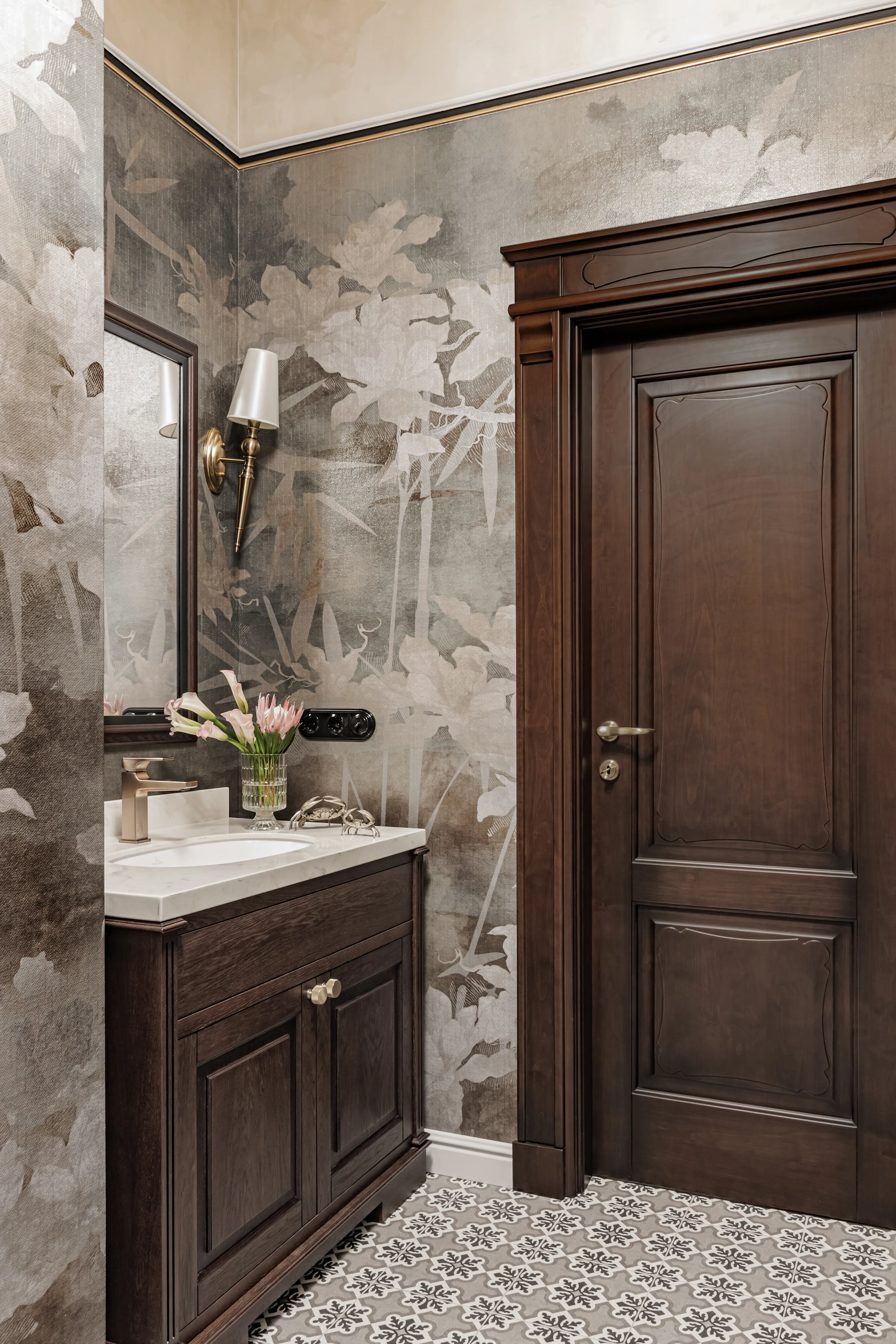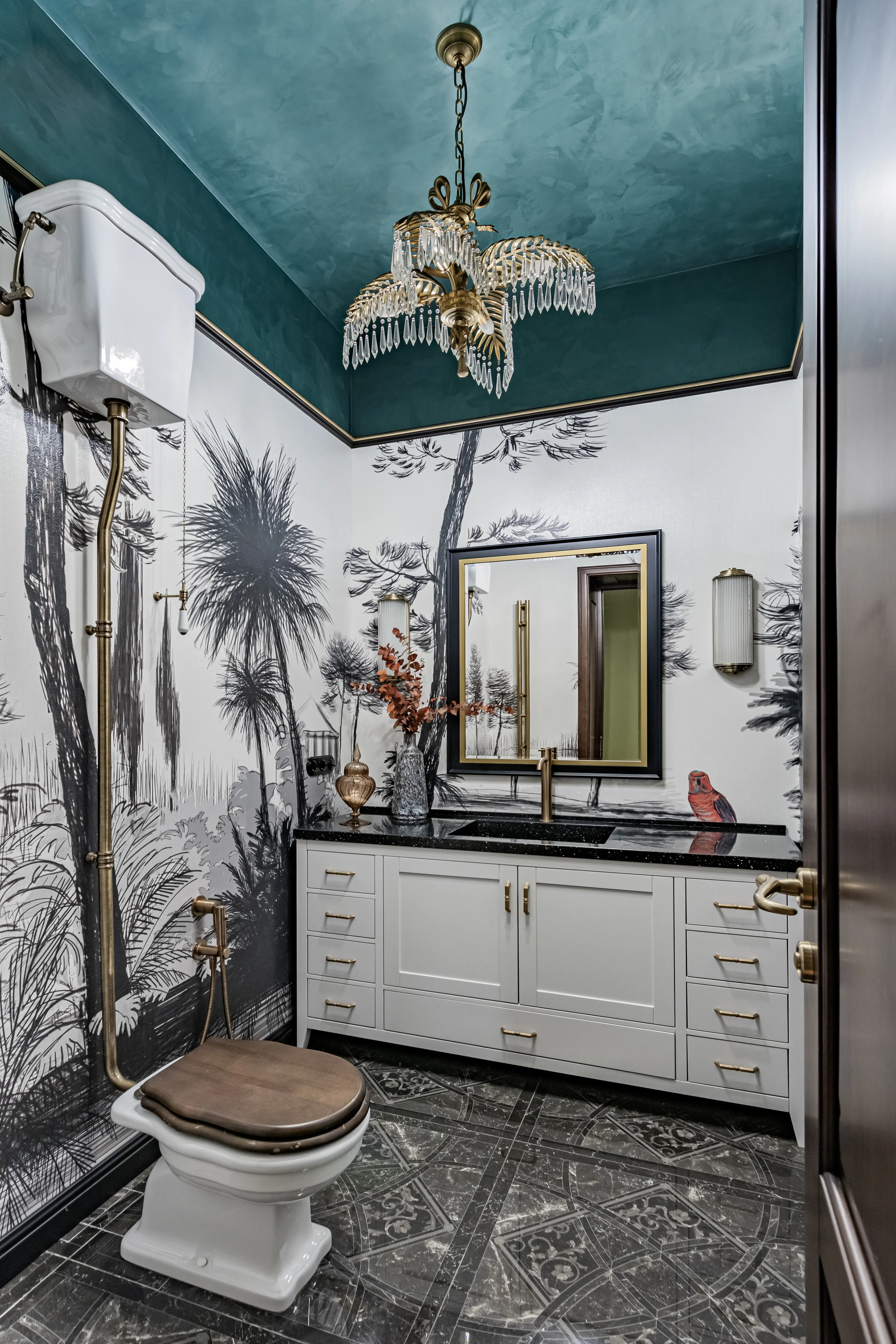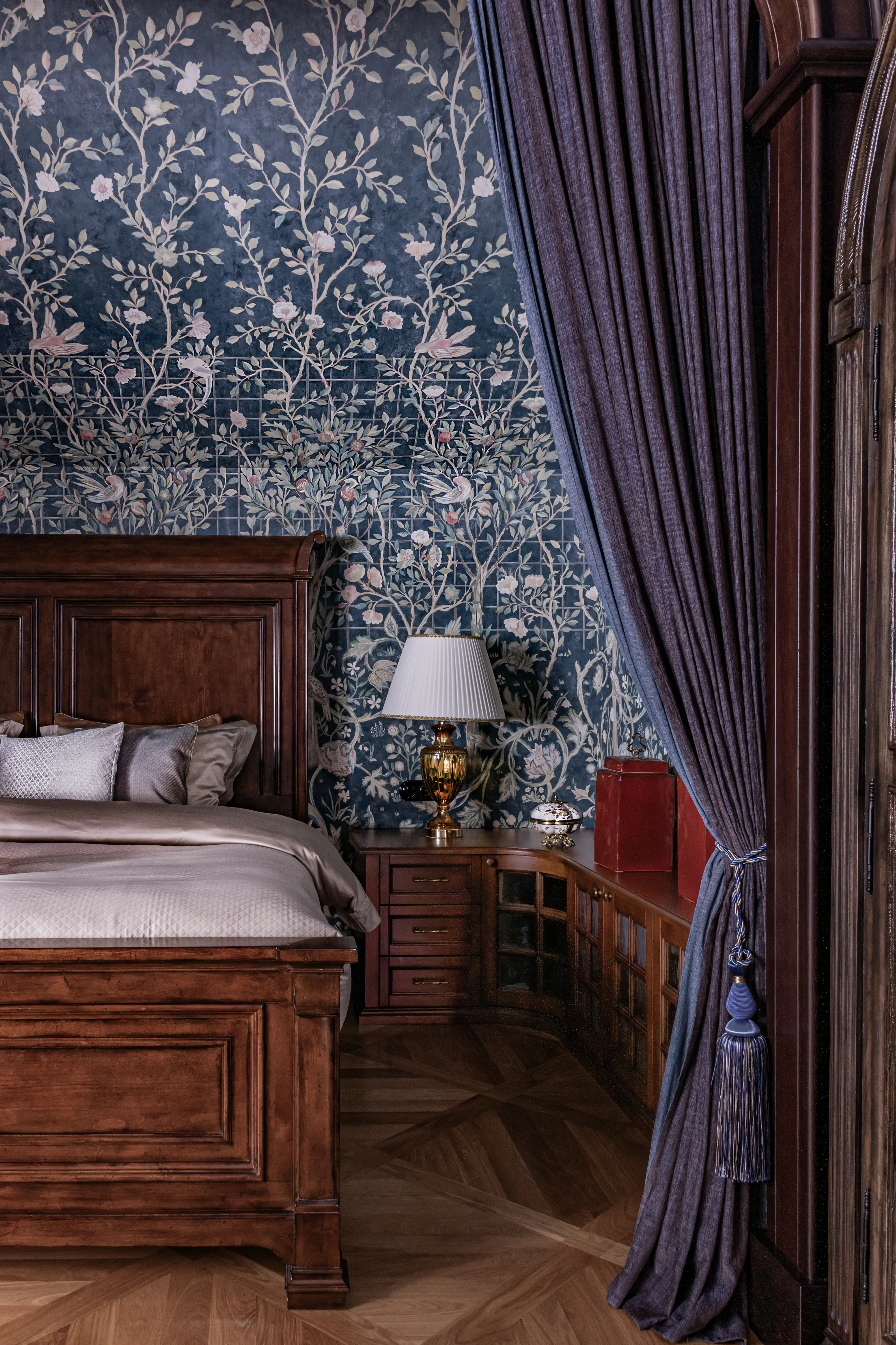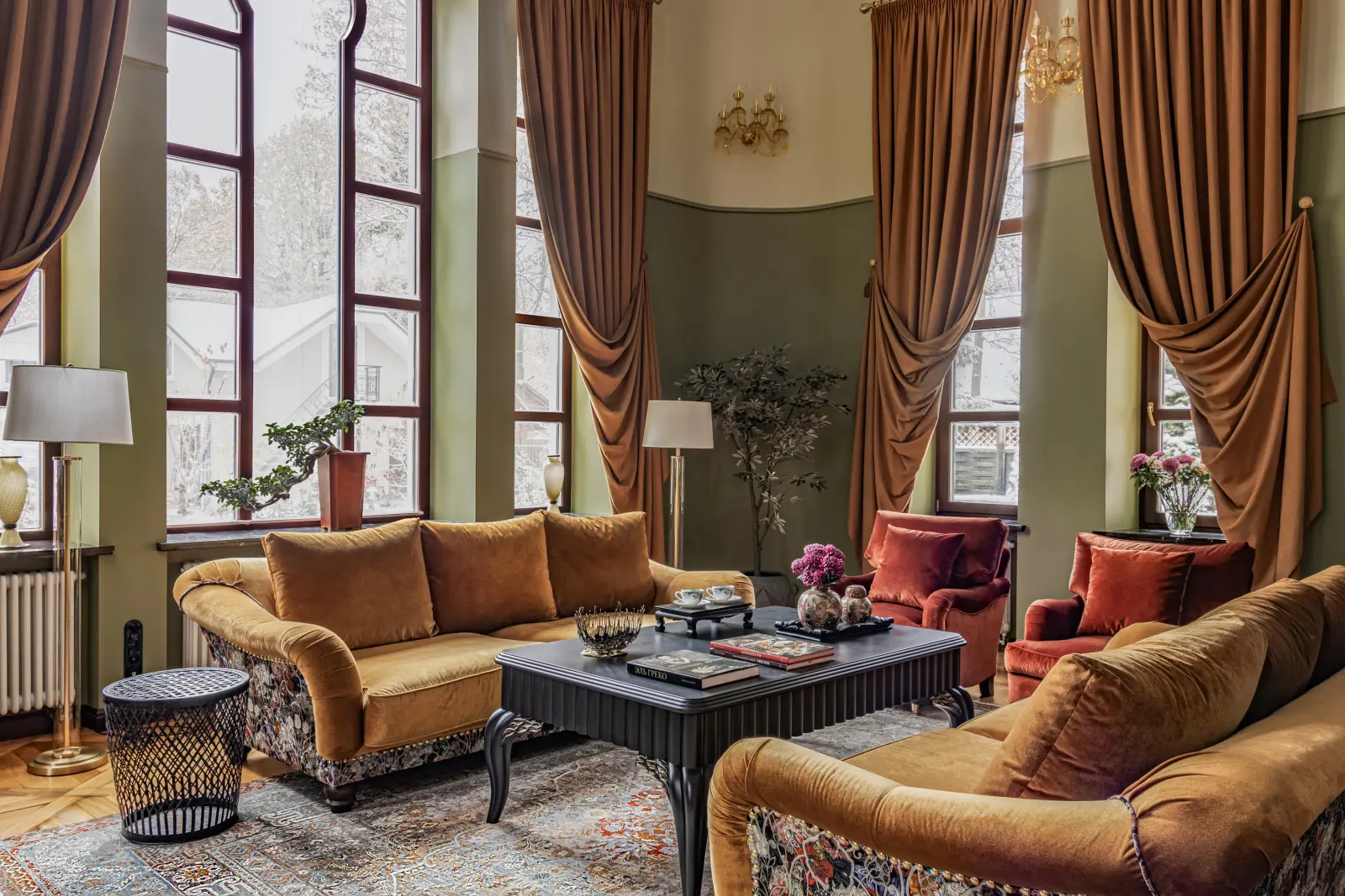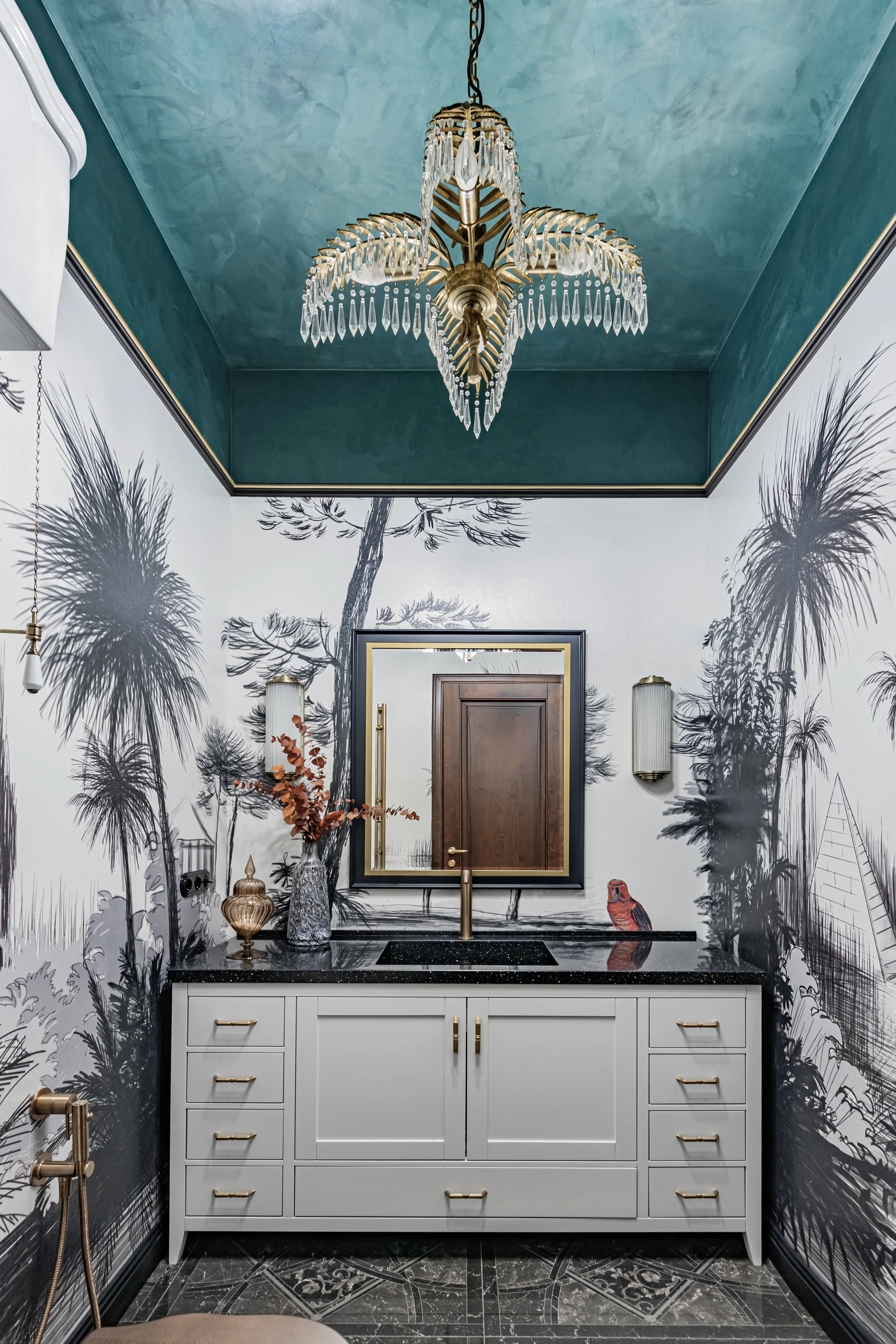 «Прочувствовать» предпочтения клиентов Надежде помогло вдумчивое изучение прежнего интерьера. Оказалось, что огромную симпатию супруги питают к красным, синим и зеленым тонам, которые легли в основу цветовой гаммы. В итоге дизайн-проект получился крайне сложным и многогранным — неудивительно, что его реализация потребовала совместной работы всей команды студии.