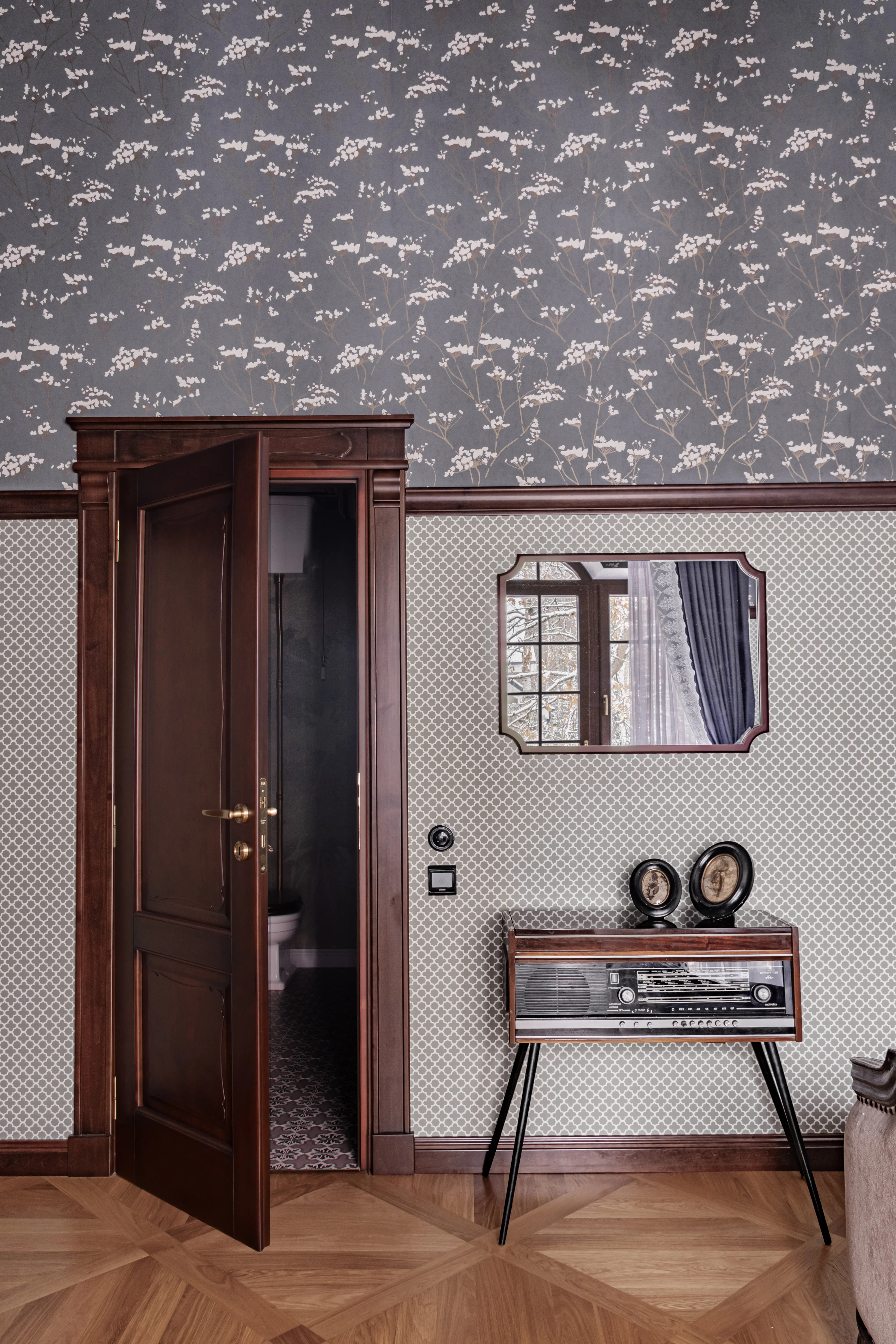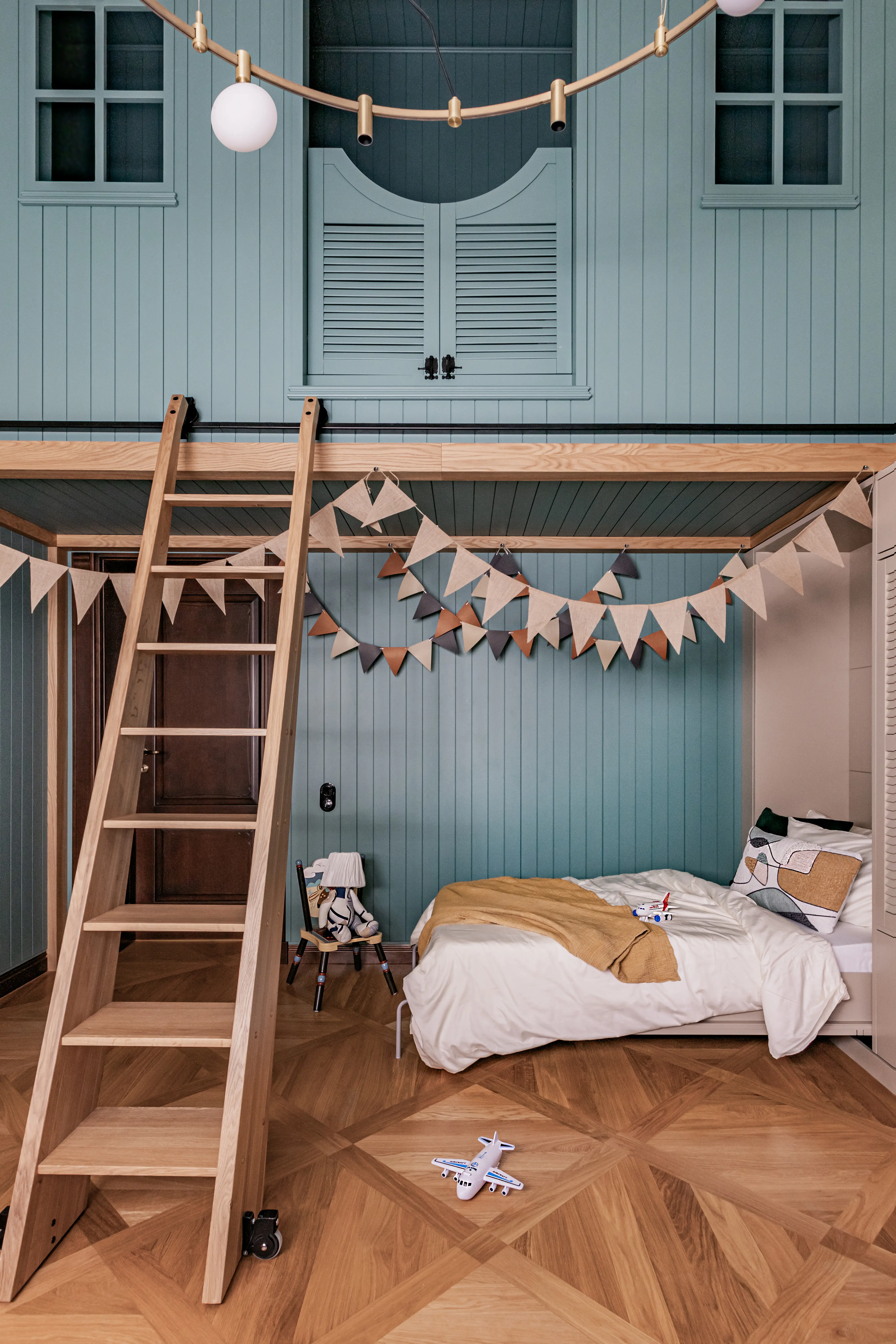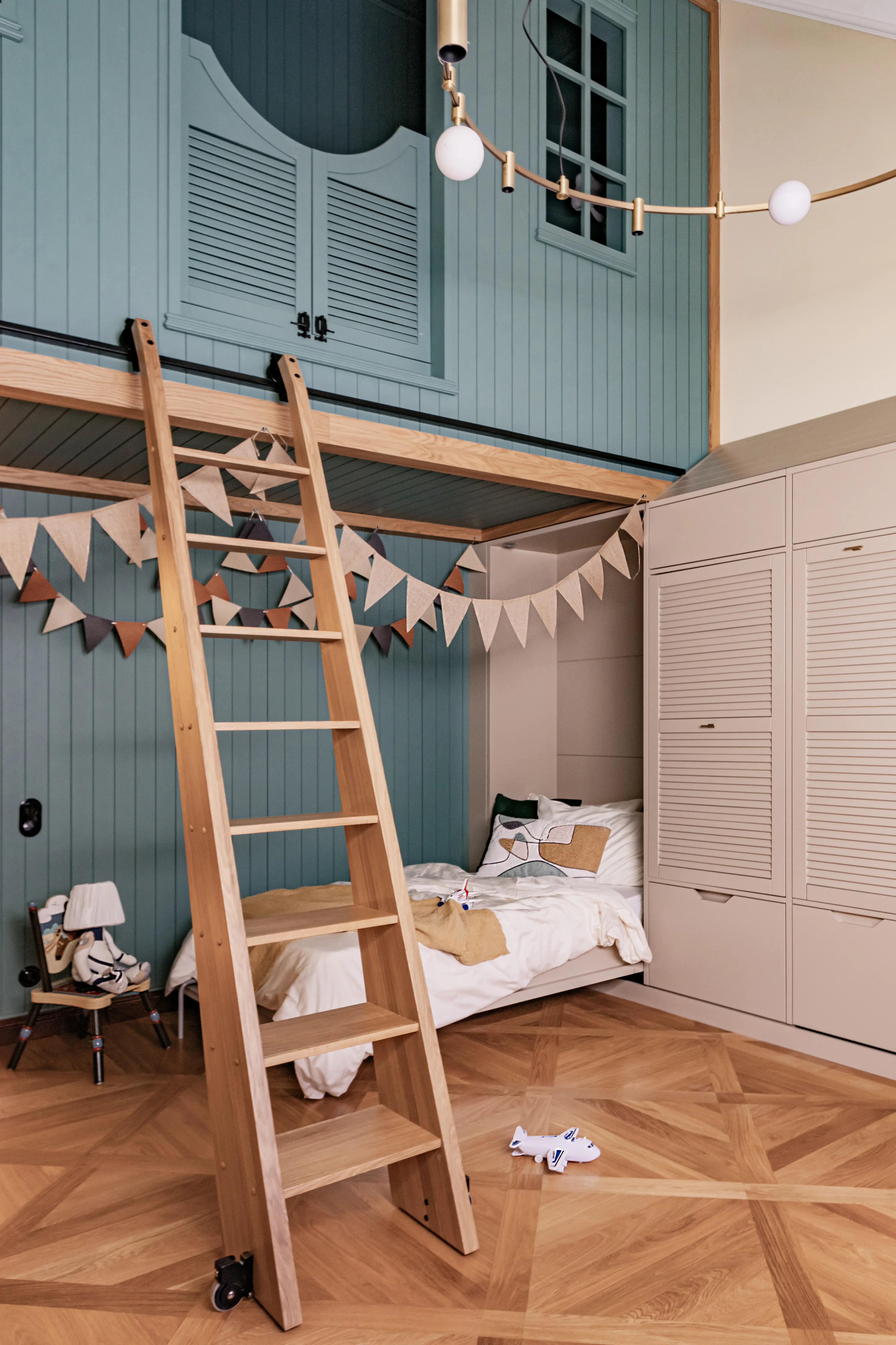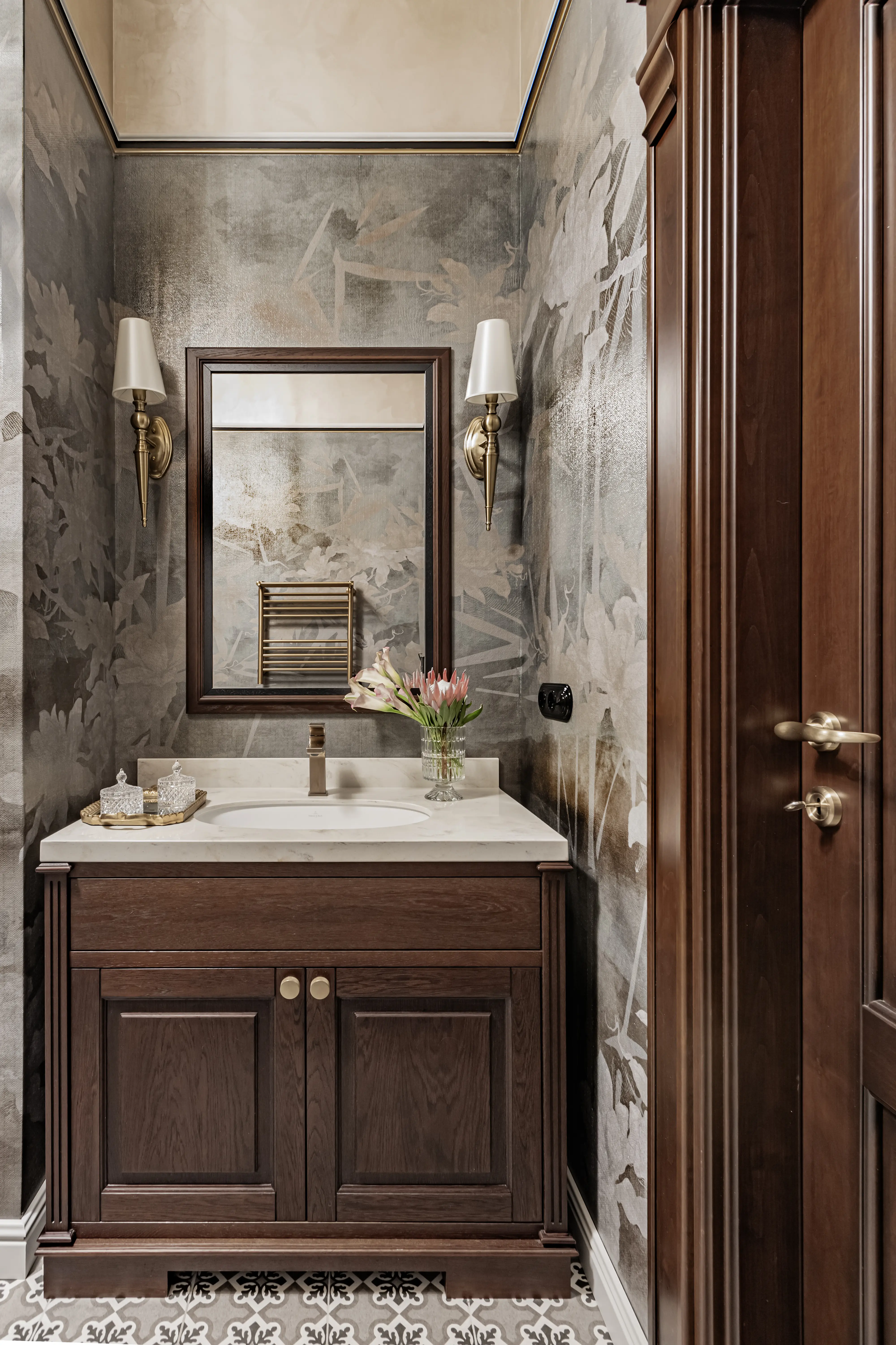 «Прочувствовать» предпочтения клиентов Надежде помогло вдумчивое изучение прежнего интерьера. Оказалось, что огромную симпатию супруги питают к красным, синим и зеленым тонам, которые легли в основу цветовой гаммы. В итоге дизайн-проект получился крайне сложным и многогранным — неудивительно, что его реализация потребовала совместной работы всей команды студии.