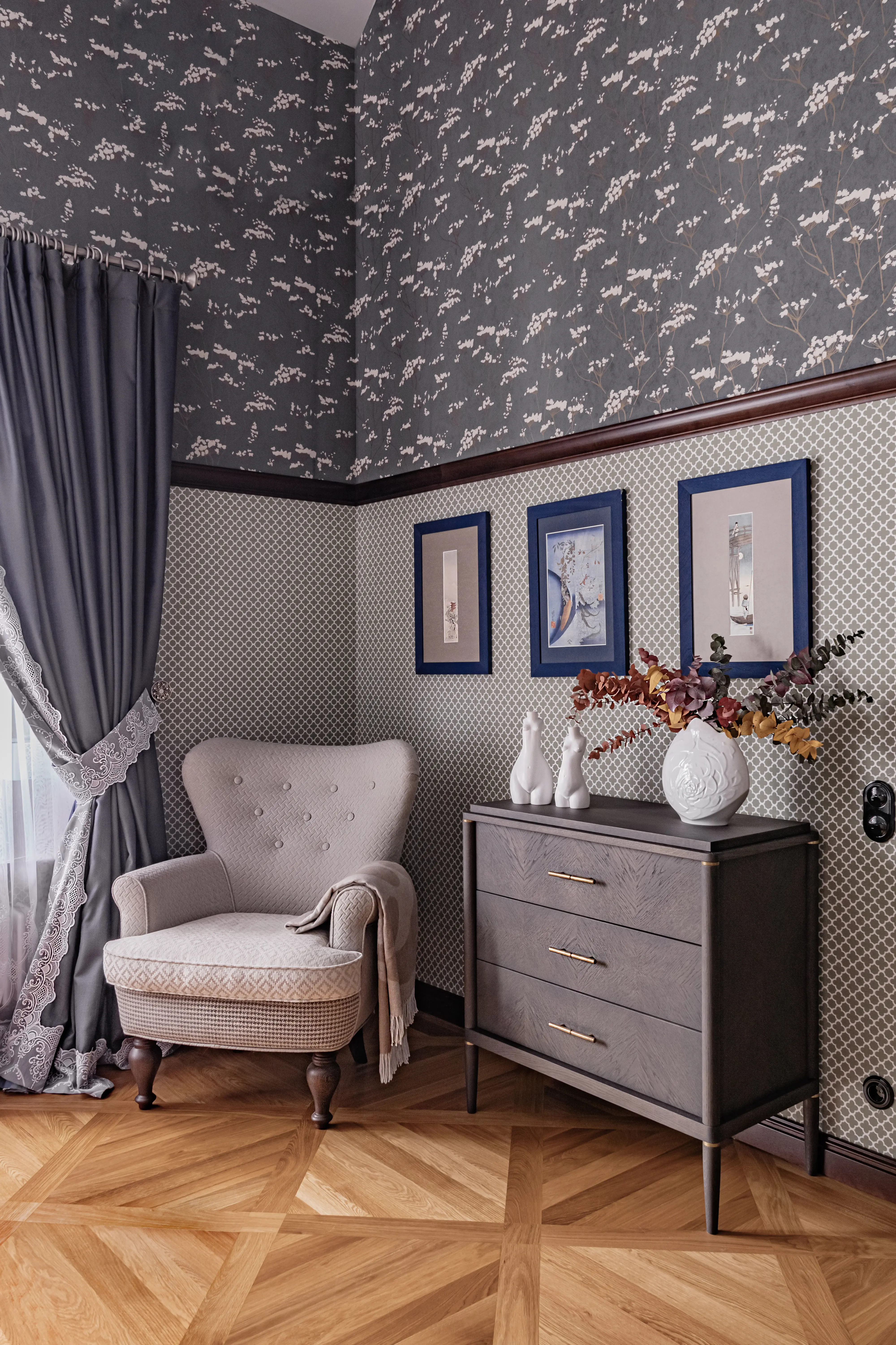 Создание интерьера семейного дома — очень личная и теплая история для команды «Точки дизайна». К своим годам владельцы дома успели построить не только дружную семью с детьми и внуками, но и серьезный бизнес. Их жизненный путь и род деятельности сразу впечатлил дизайнеров, поэтому супруги буквально стали их кумирами. Команда «Точки дизайна» бросила все силы на воплощение мечты этой семьи — обновление их любимого коттеджа.