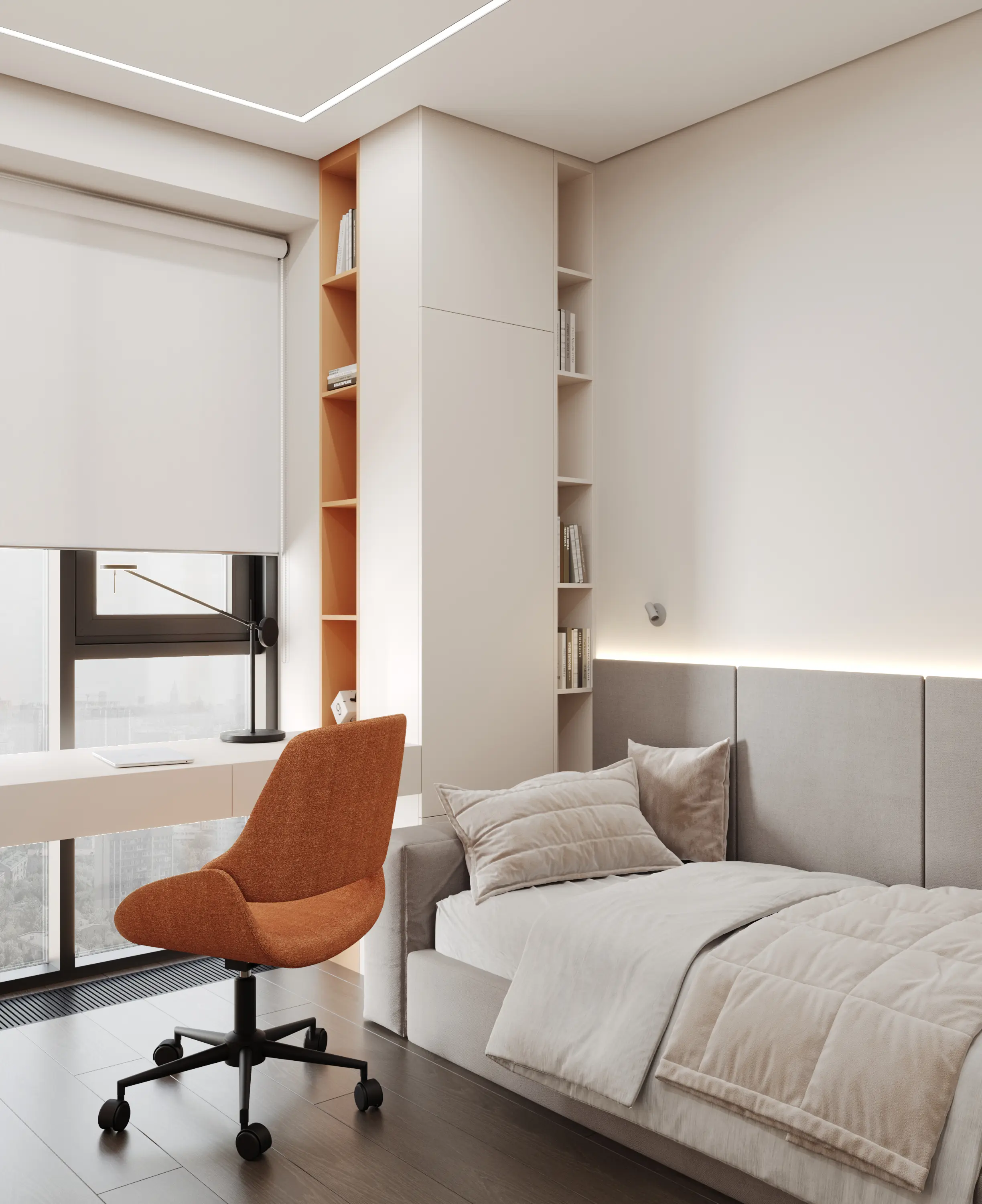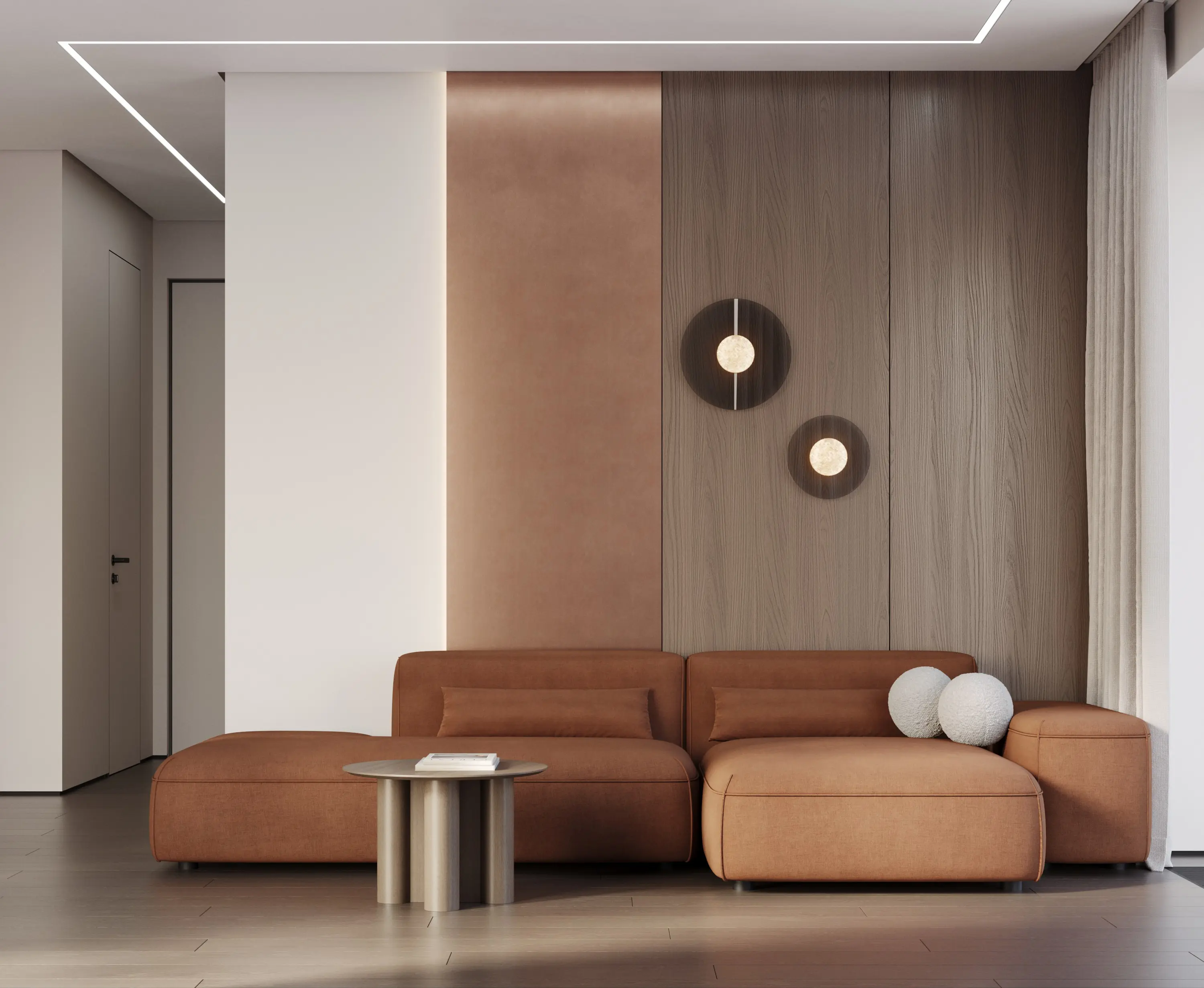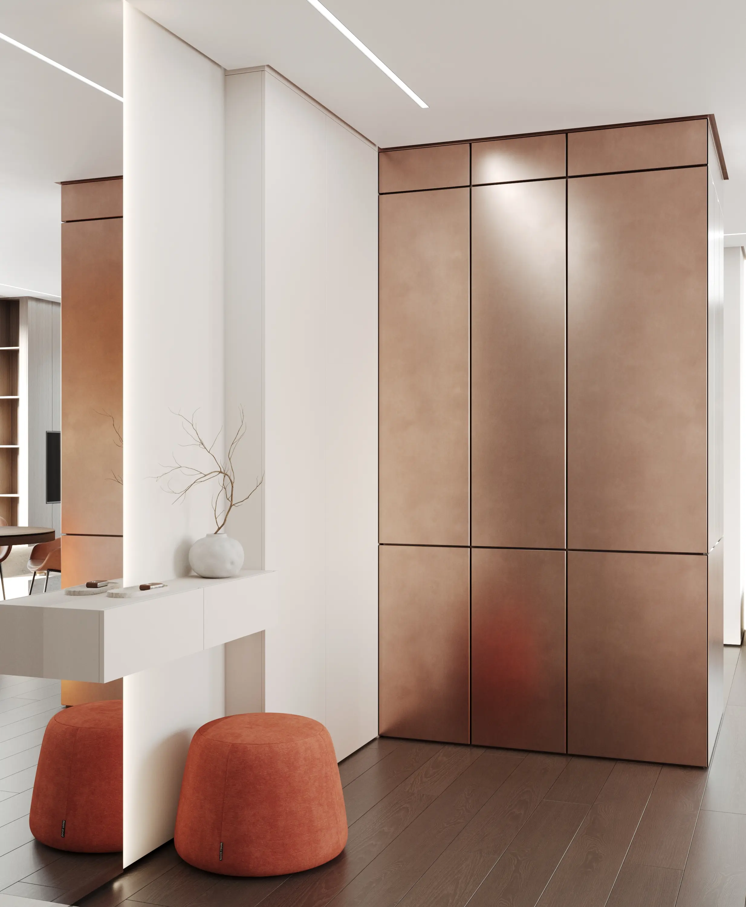 Квартира площадью 78,5 кв. м расположена в современном жилом комплексе Level Причальный в Москве. Пространство предназначено для комфортного проживания семьи из трёх человек.Основная задача проекта — создать светлый, лаконичный и минималистичный интерьер с выразительными цветовыми акцентами. Стилистика строится на сочетании элементов минимализма и современного дизайна.