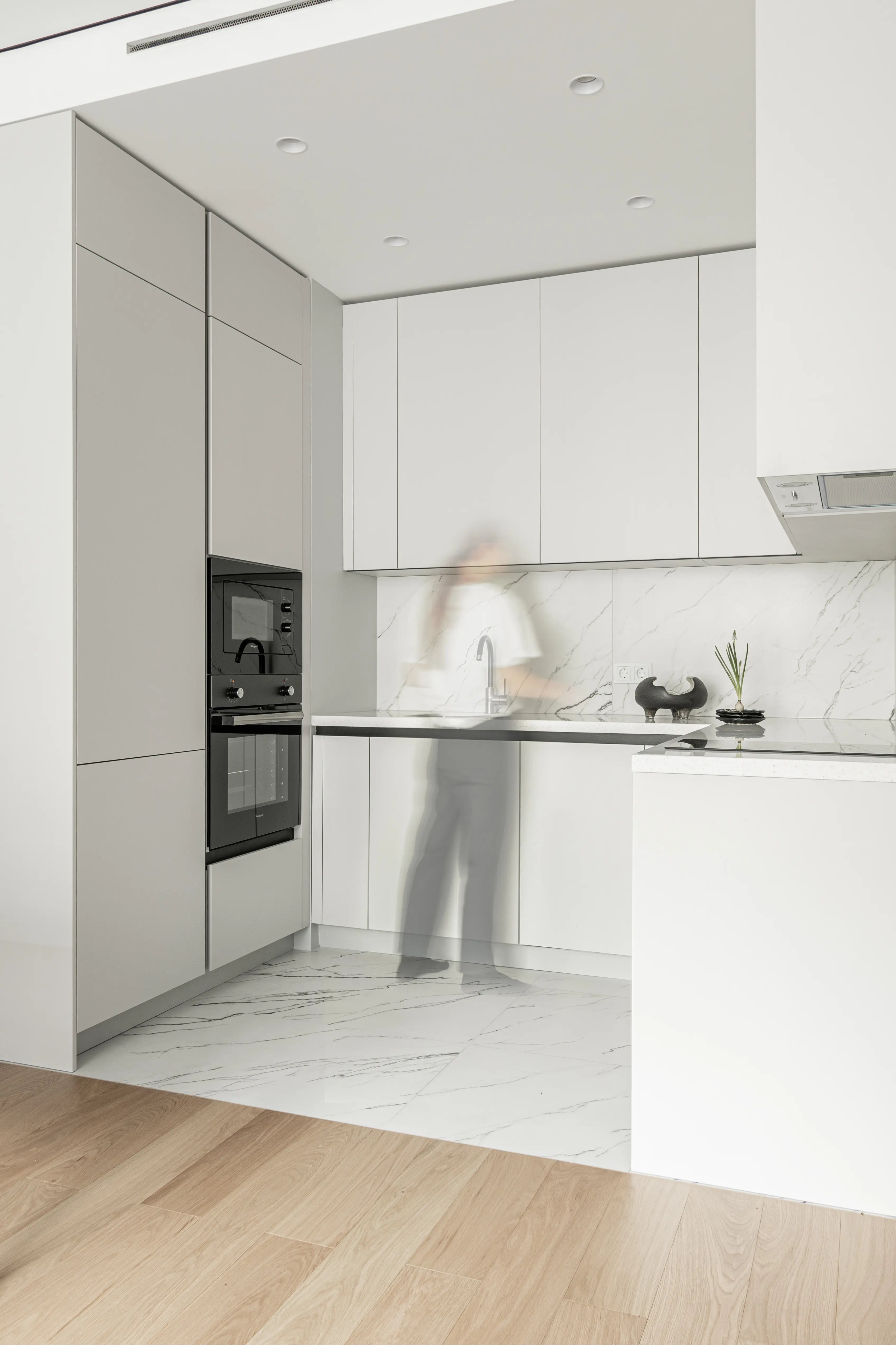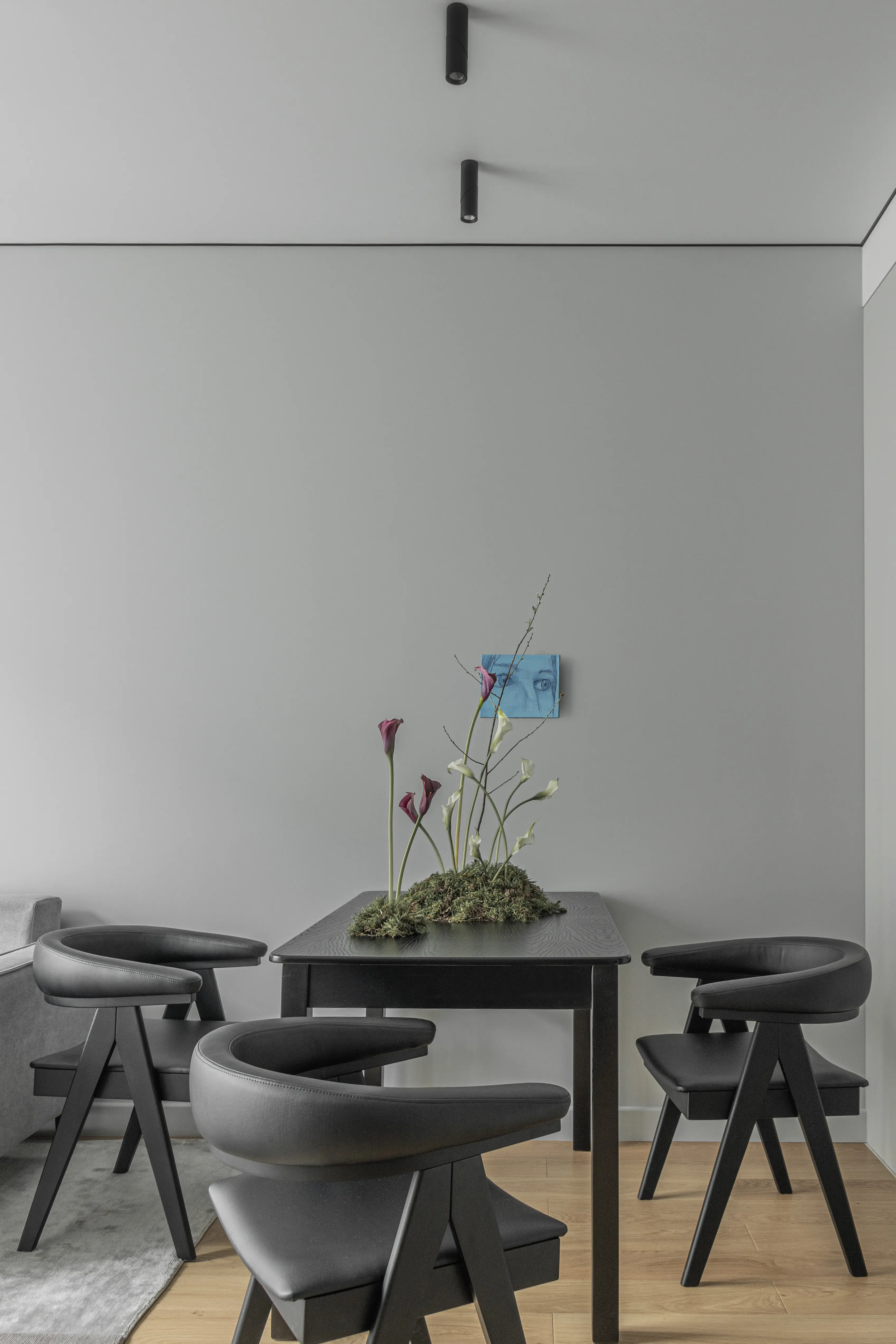 Этот проект создавался под сдачу в аренду. Заказчики обратились с пожеланием минимально вмешиваться в исходную планировку от застройщика (white box).