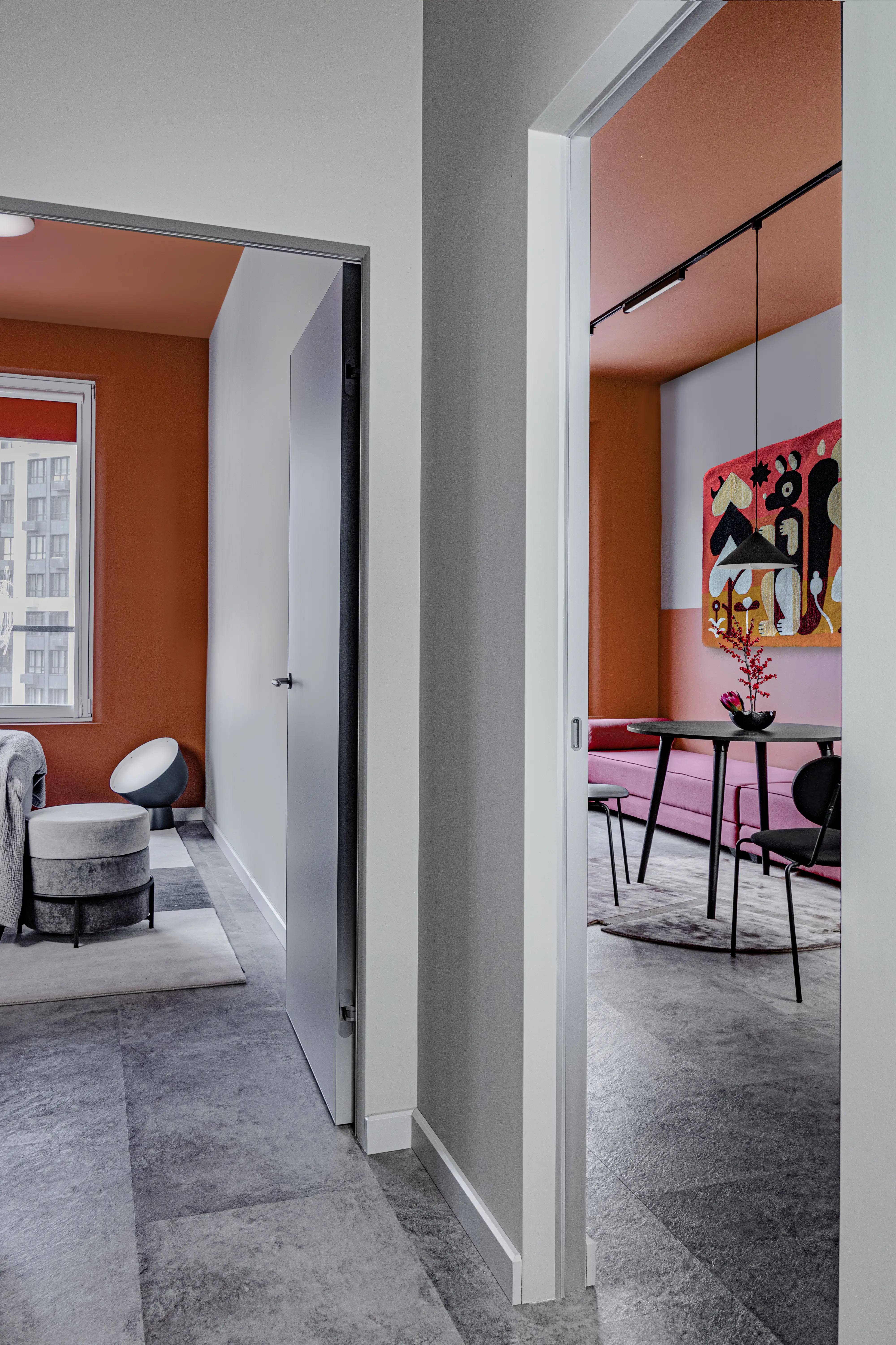 Клиент дал полный карт-бланш на смелые решения. Так как он собирался сдавать объект в аренду, оформление требовалось минималистичное и подходящее для долгосрочного проживания. Образ потенциального арендатора сложился сразу: современный динамичный квартал идеально подойдет студенту или молодой паре. Артистичный дизайн-проект с яркой палитрой полностью соответствовал желаниям готового к экспериментам клиента, поэтому был согласован с первого раза.